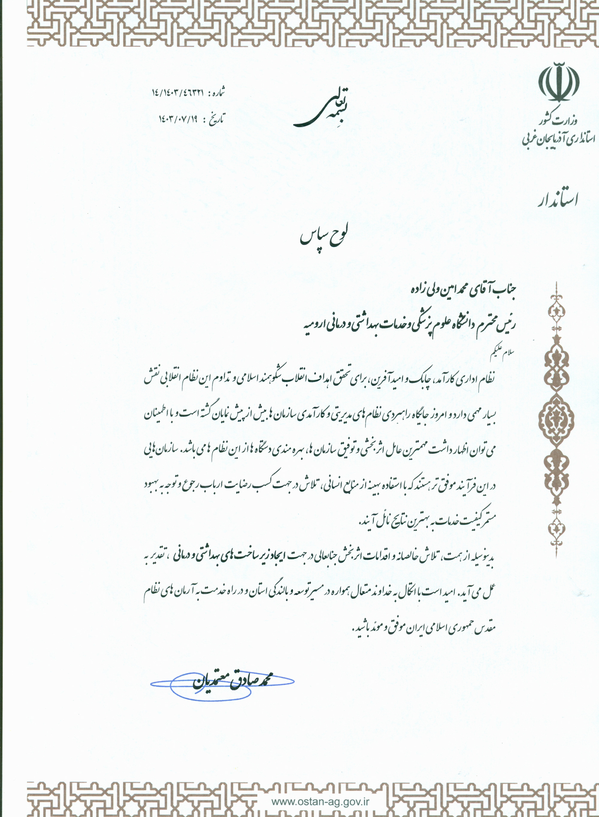 افتخار آفرینی دانشگاه علوم پزشکی آذربایجان غربی