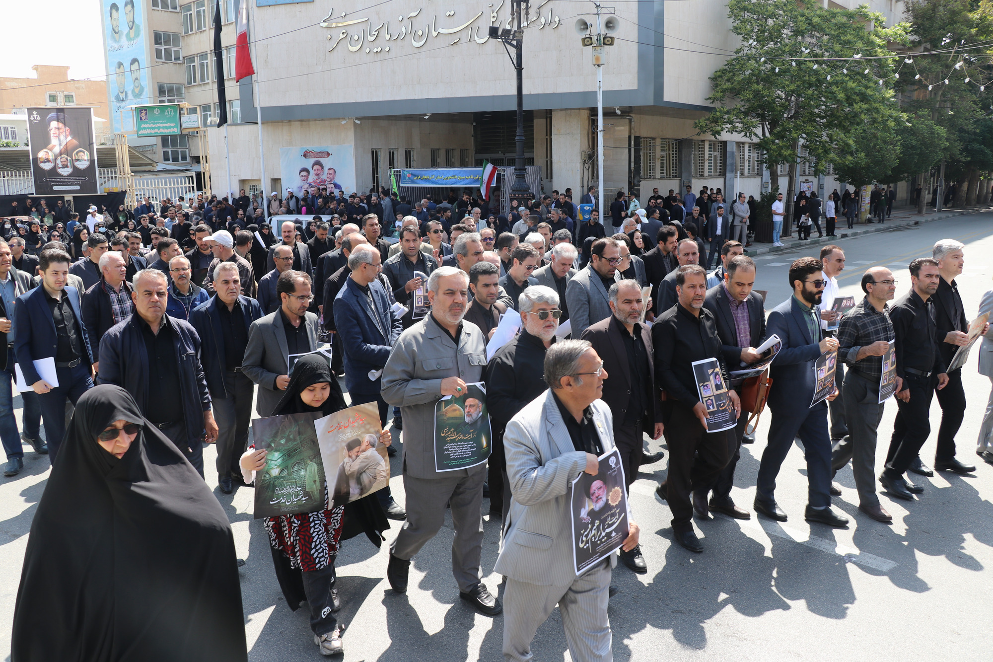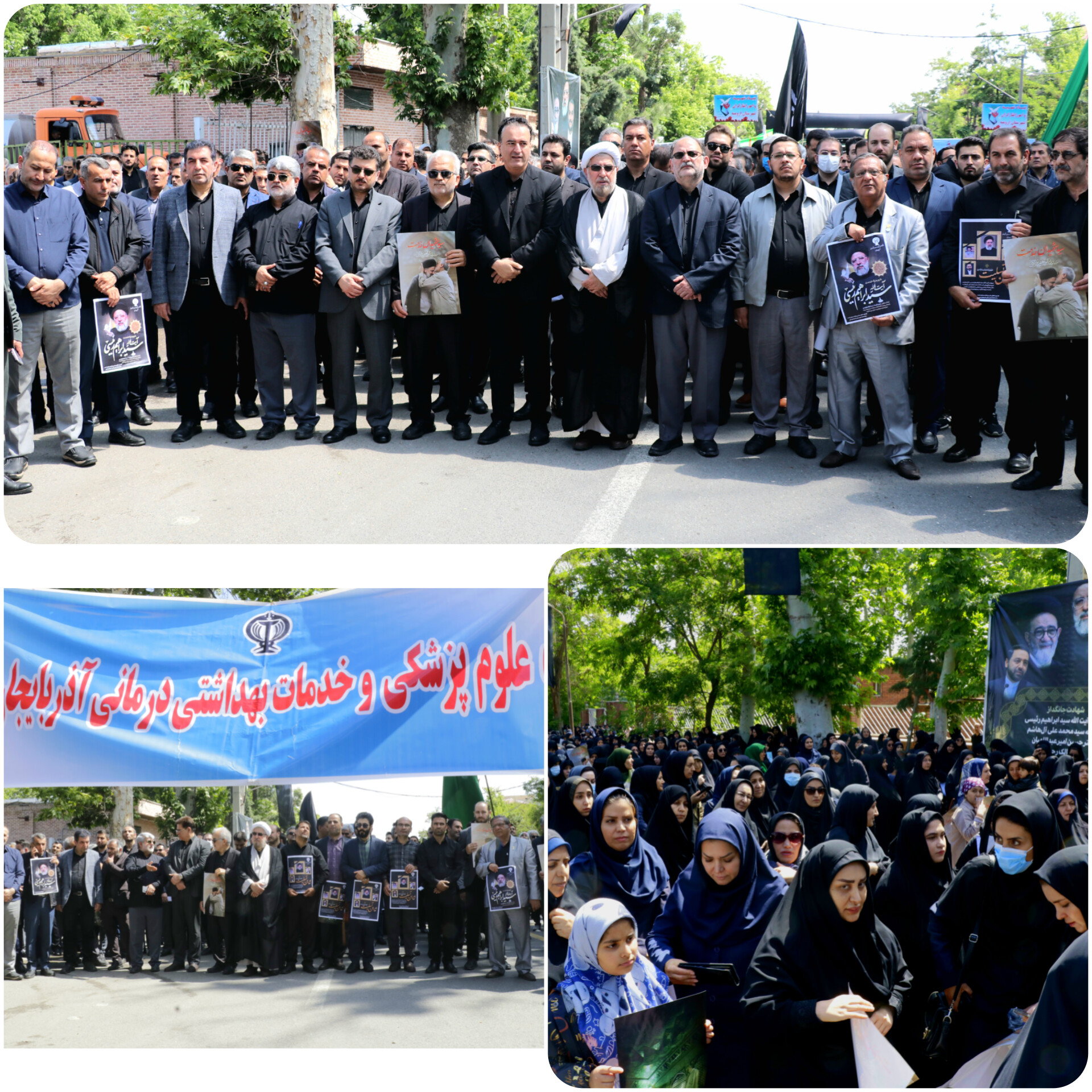 صبح پنجشنبه 3 خرداد 1403 کارکنان، اساتید و دانشجویان دانشگاه علوم پزشکی ارومیه همگام با مردم ولایتمدار در مراسم گرامیداشت شهدای خدمت ، شهید آیت الله دکتر سید ابراهیم رئیسی و همراهان گرانقدر ایشان حضوری گسترده داشتند .