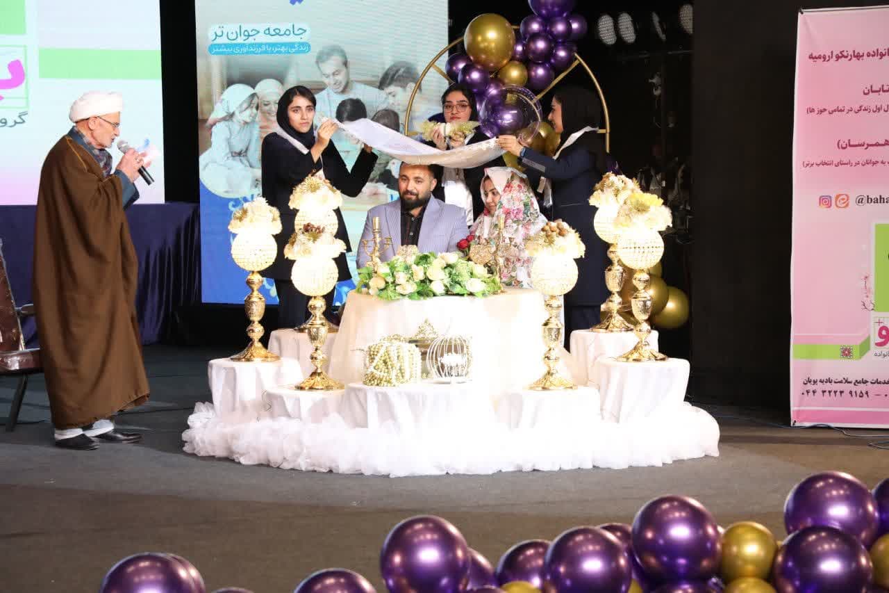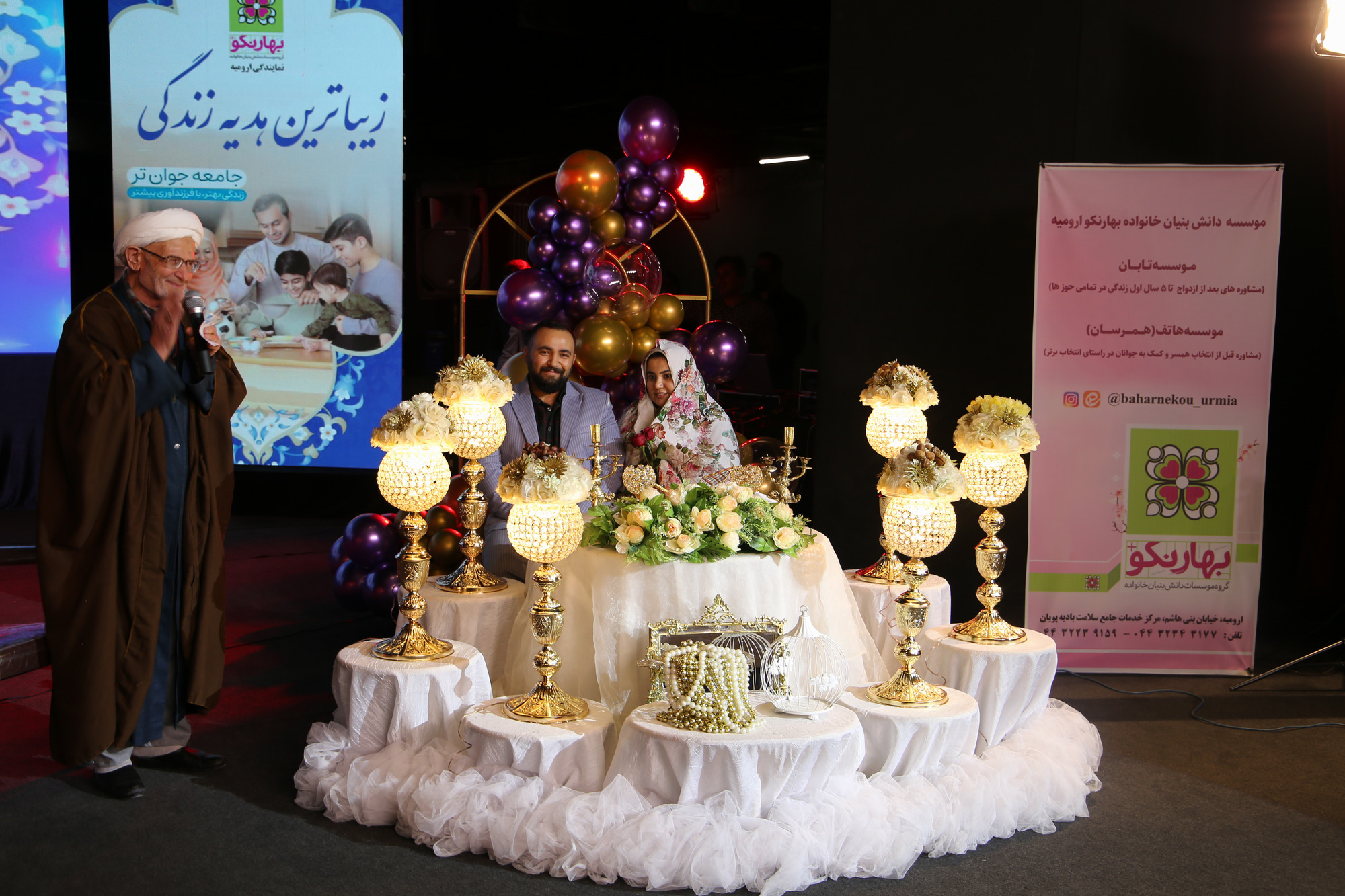 یکی از بخشهای مورد توجه حضار برگزاری مراسم عقد برای یک زوج جوان در پایان این مراسم بود.