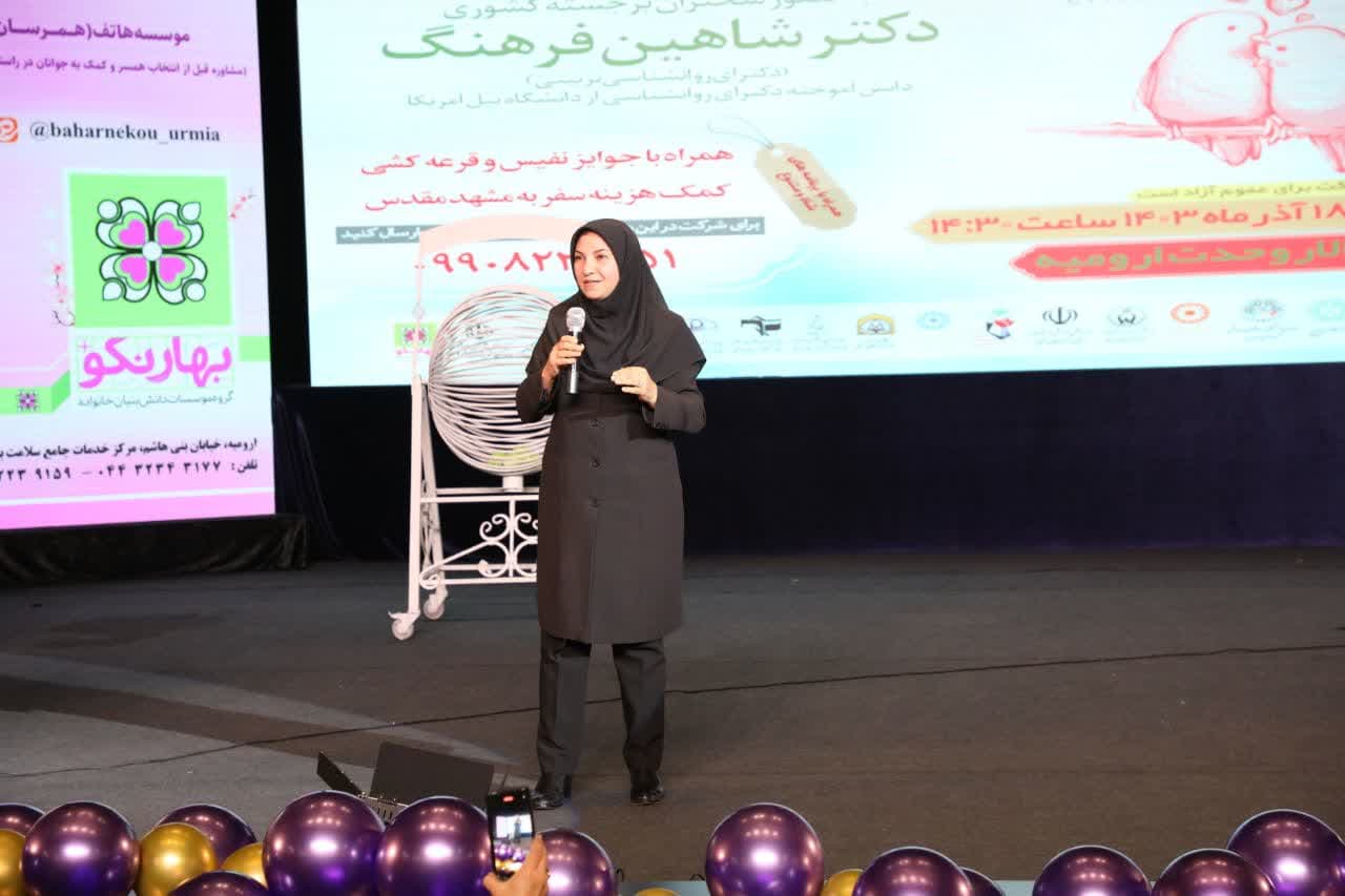 به گزارش پایگاه خبری وبدا آذربایجان غربی هجدهم آذرماه سال جاری کارگاه رازهای عاشقانه ازدواج با طعم آرامش در ارومیه با حضور دکتر محمد امین ولی زاد، رئیس دانشگاه علوم پزشکی، خدمات بهداشتی و درمانی آذربایجان غربی، حجت الاسلام طاهری رئیس نهاد مقام معظم رهبری در دانشگاه علوم پزشکی ارومیه و نیر الهامی مدیرکل امور بانوان و خانواده استانداری آذربایجان غربی و سخنران برجسته کشوری دکتر شاهین فرهنگ دارای دکترای روانشناسی تربیتی از دانشگاه هاروارد آمریکا در تالار وحدت ارومیه برگزار گردید.