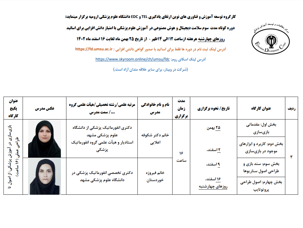 کارگاه "مجموعه دوره های کوتاه مدت کاربرد سلامت دیجیتال و هوش مصنوعی در علوم پزشکی باعنوان بازی سازی در آموزش پزشکی: از اصول تا طراحی عملی
